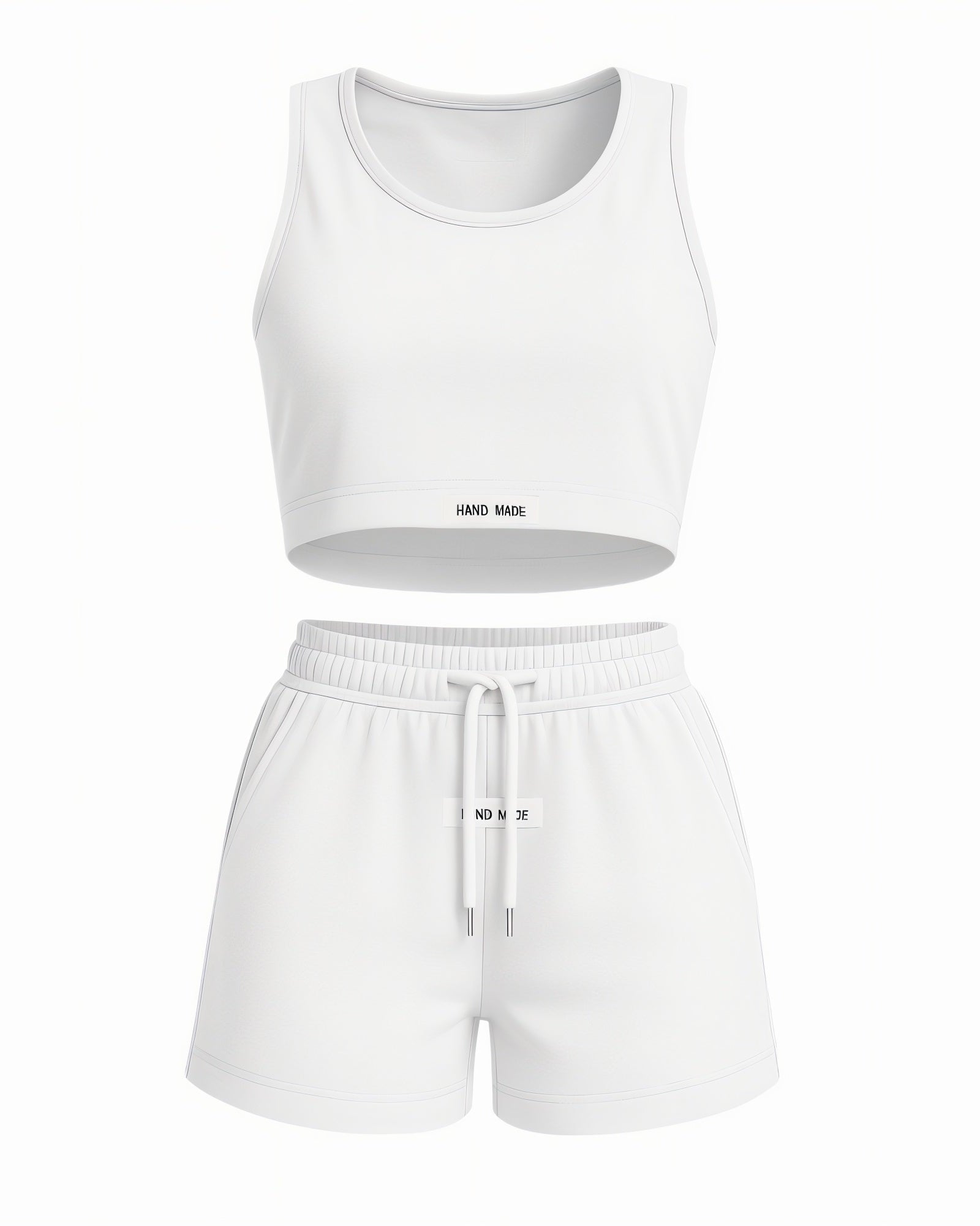 Simple, sporty, and made to move. This set serves casual energy with a cropped tank and easy drawstring shorts perfect for lounging or on-the-go days. Soft stretch fabric keeps it comfy while the clean finish keeps it cute.