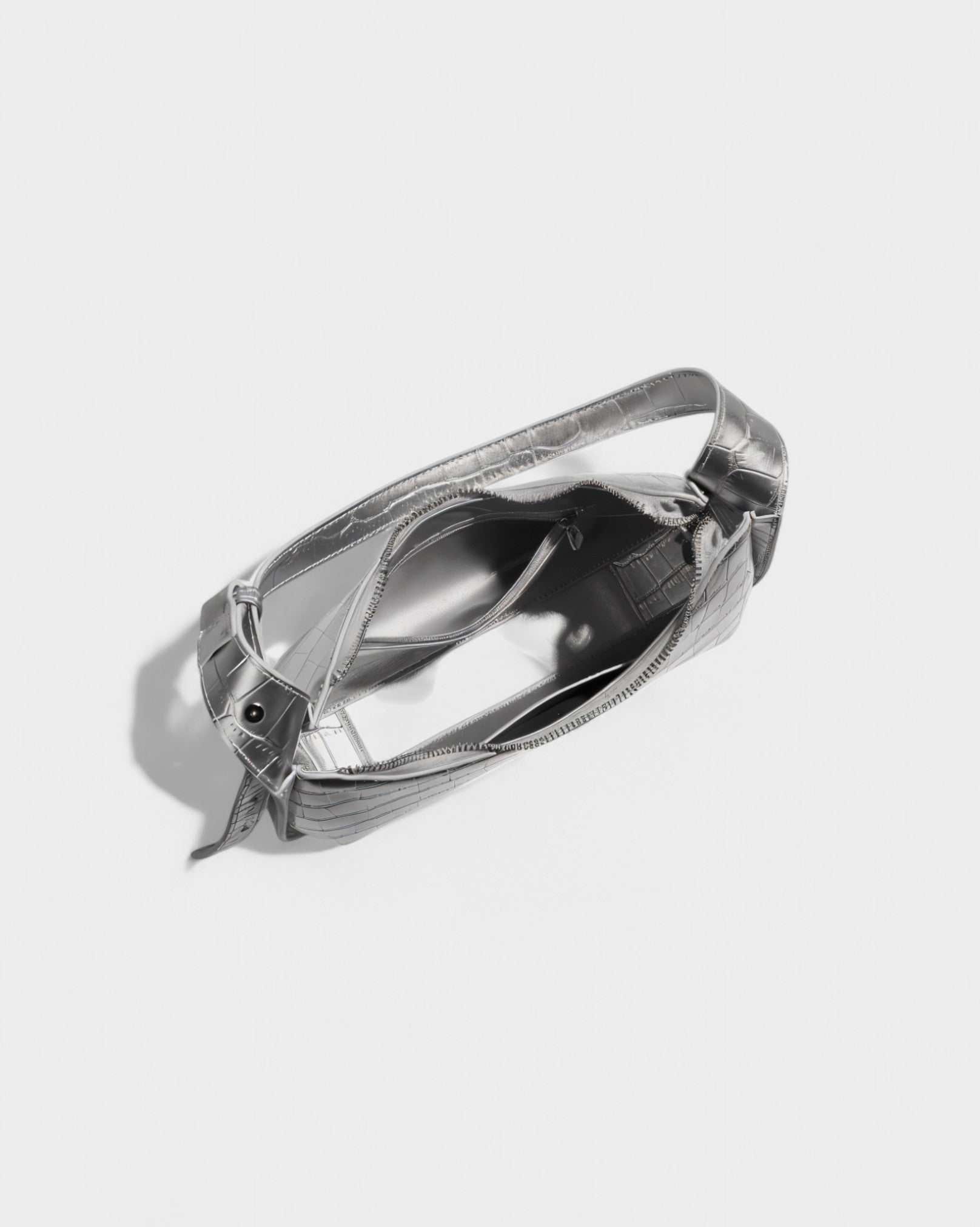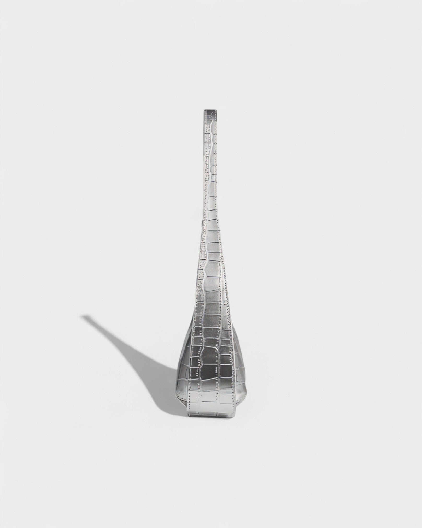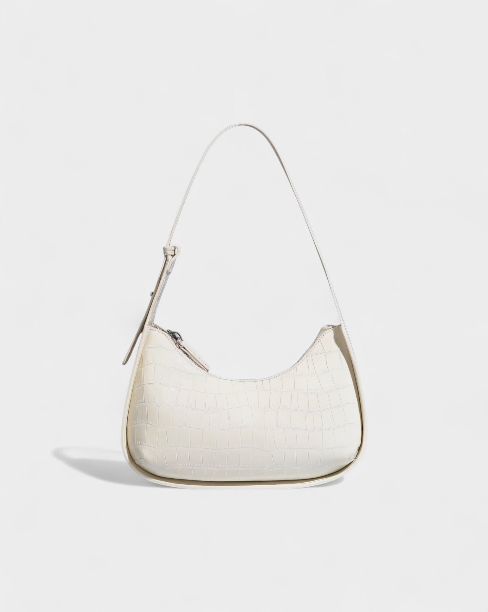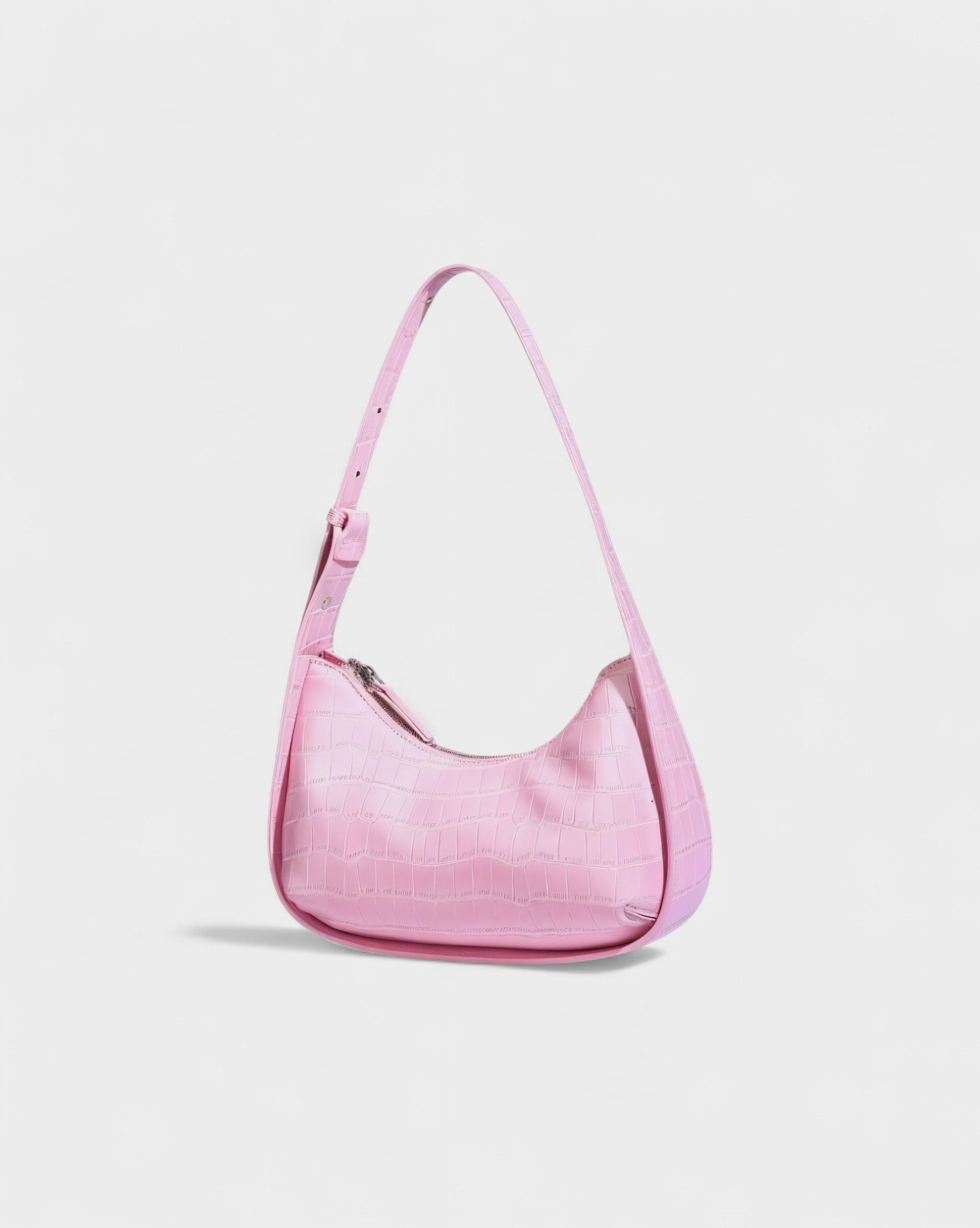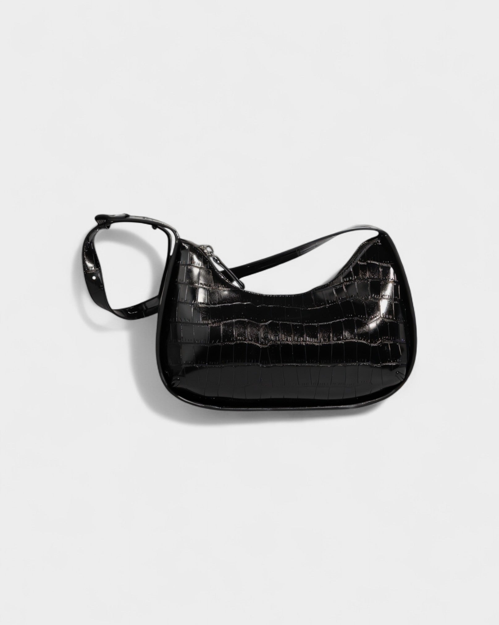 The Cianna Bag is sleek, modern, and unapologetically bold. Crafted with a metallic croc-embossed finish, it features a sculpted silhouette that tucks perfectly under the arm. The zip-top opens to a lined interior with a slip pocket, balancing high-shine style with practical function.