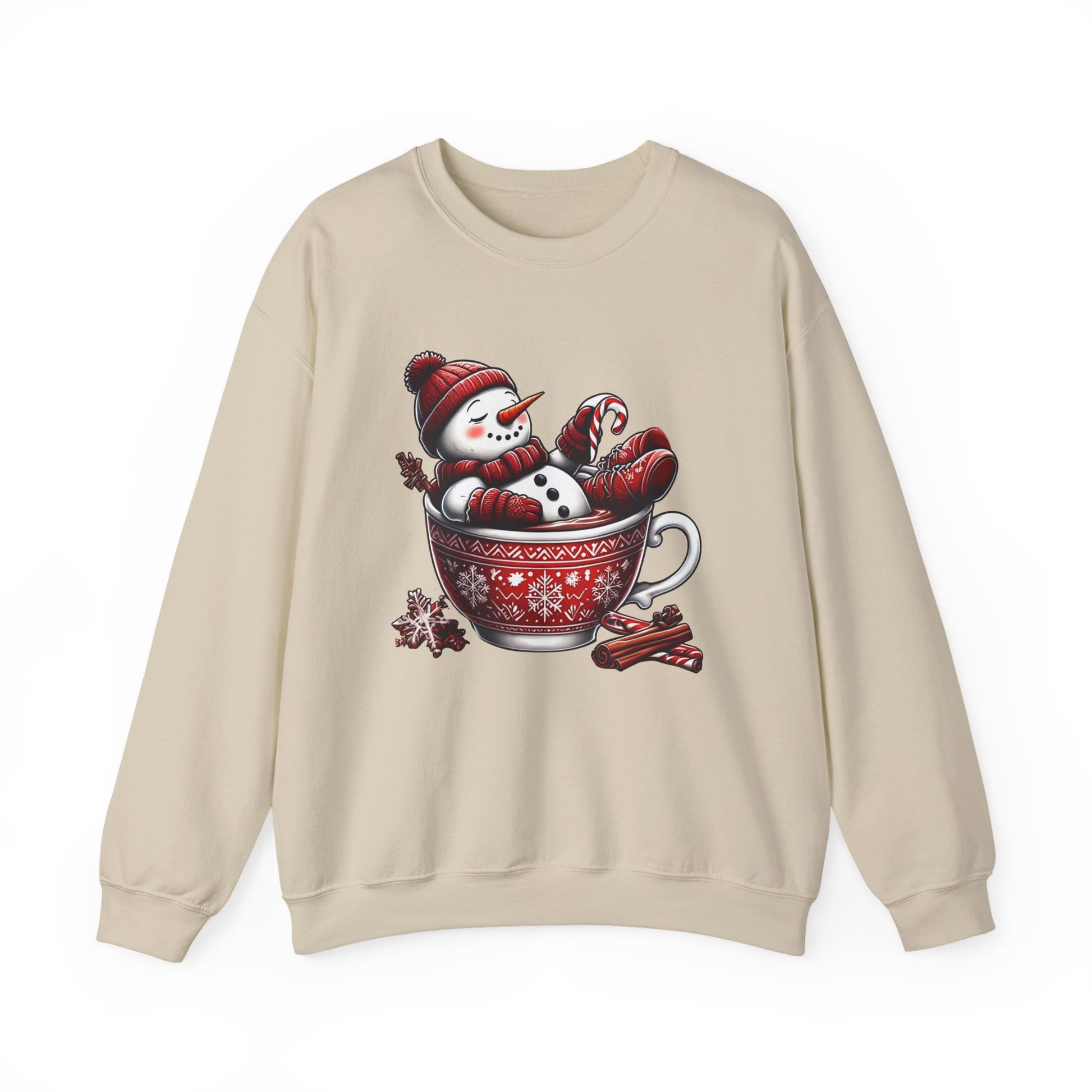 Cozy Snowman in Hot Cocoa Christmas Crewneck Sweatshirt