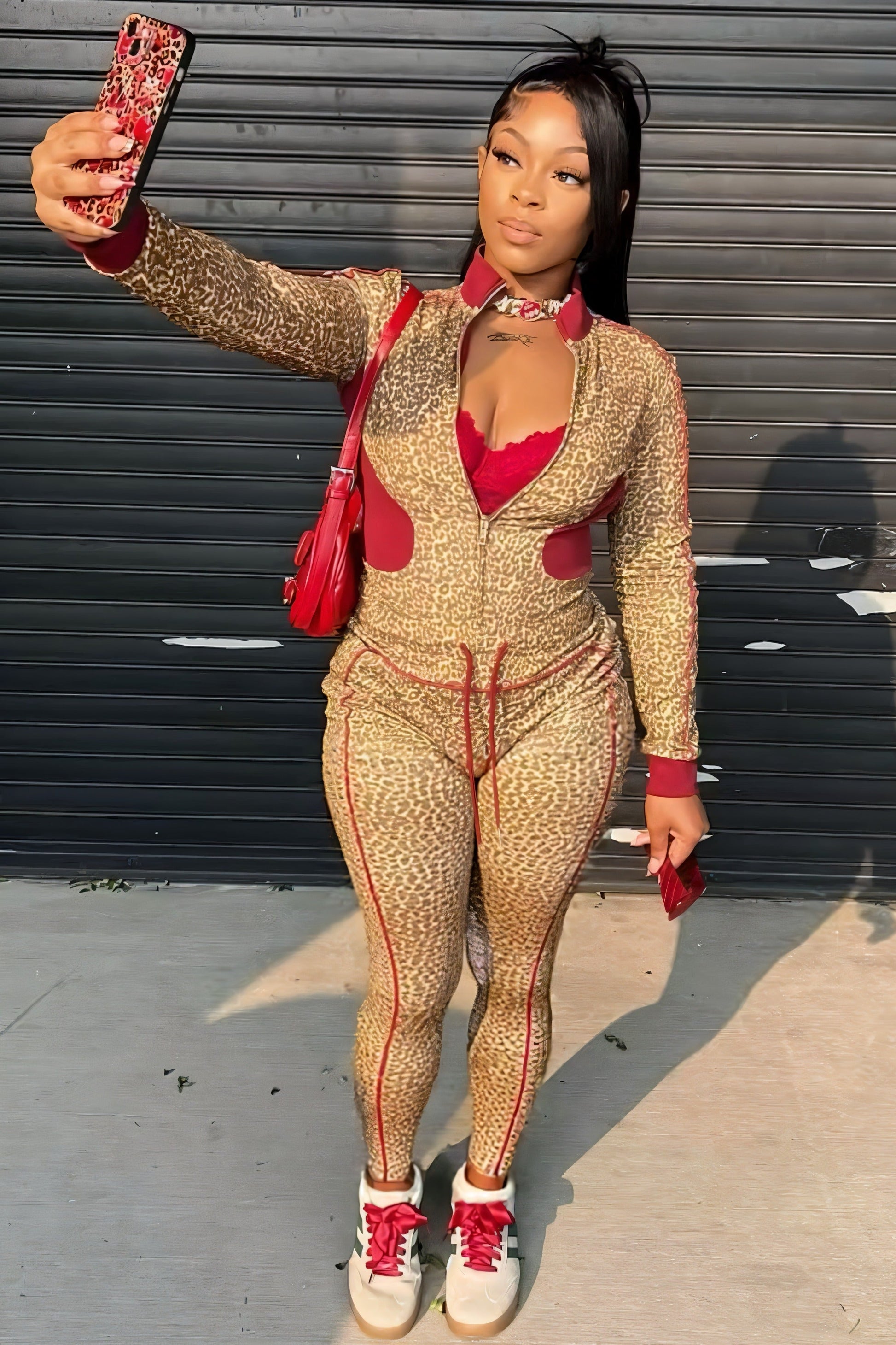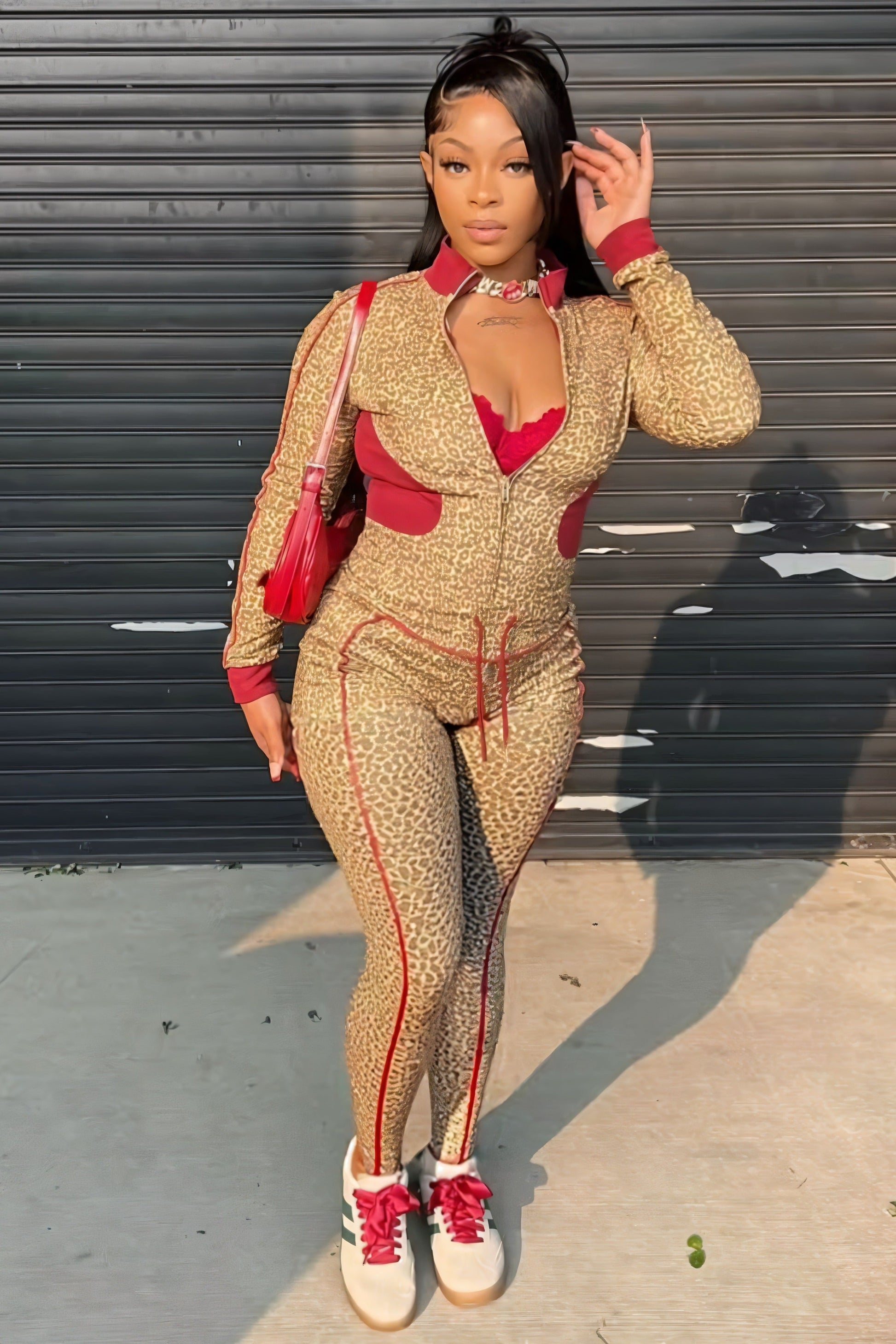 DERMA Leopard Print Zip-up Top & Leggings Set