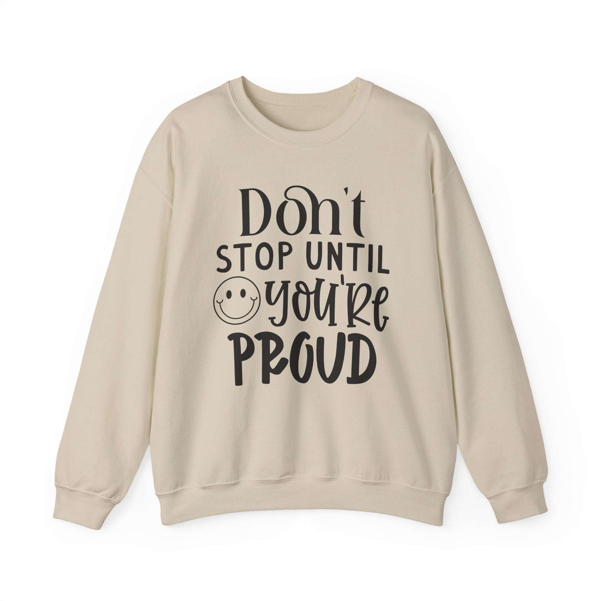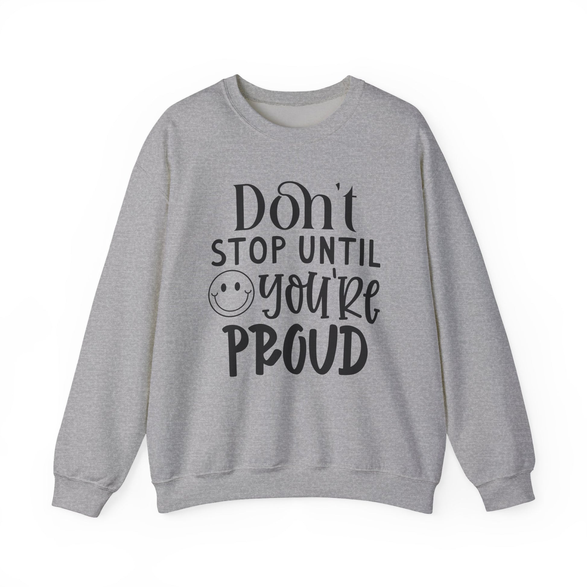 Don't Stop Until You're Proud Motivational Crewneck Sweatshirt