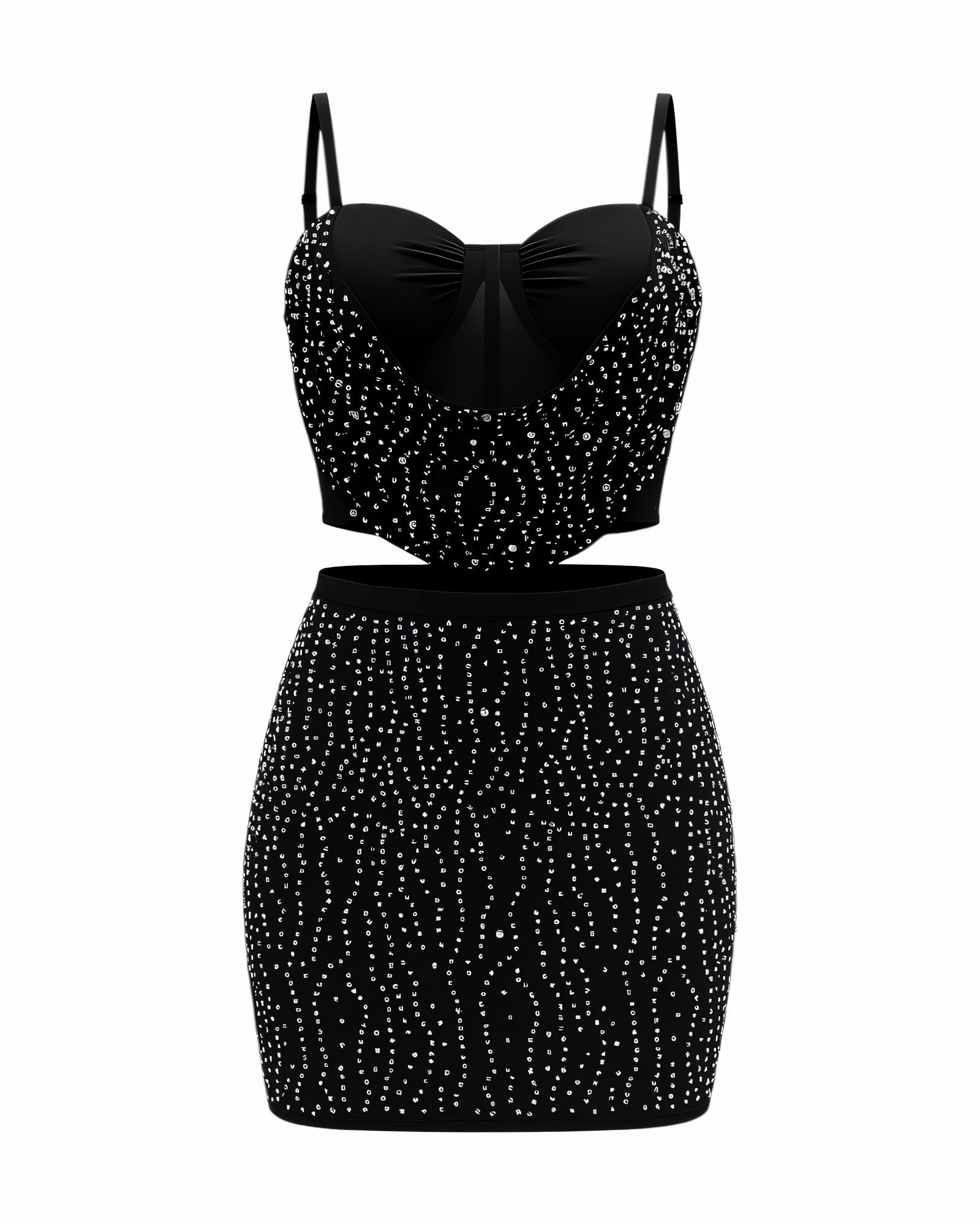 Shine like a star in the Evanie Set a jaw-dropping duo made for main character moments. The crop top serves major glam with sculpted ruching and all-over diamond and pearl beading, while the matching skirt hugs every curve with the same glittering detail. Bold, body-hugging, and built to stand out.