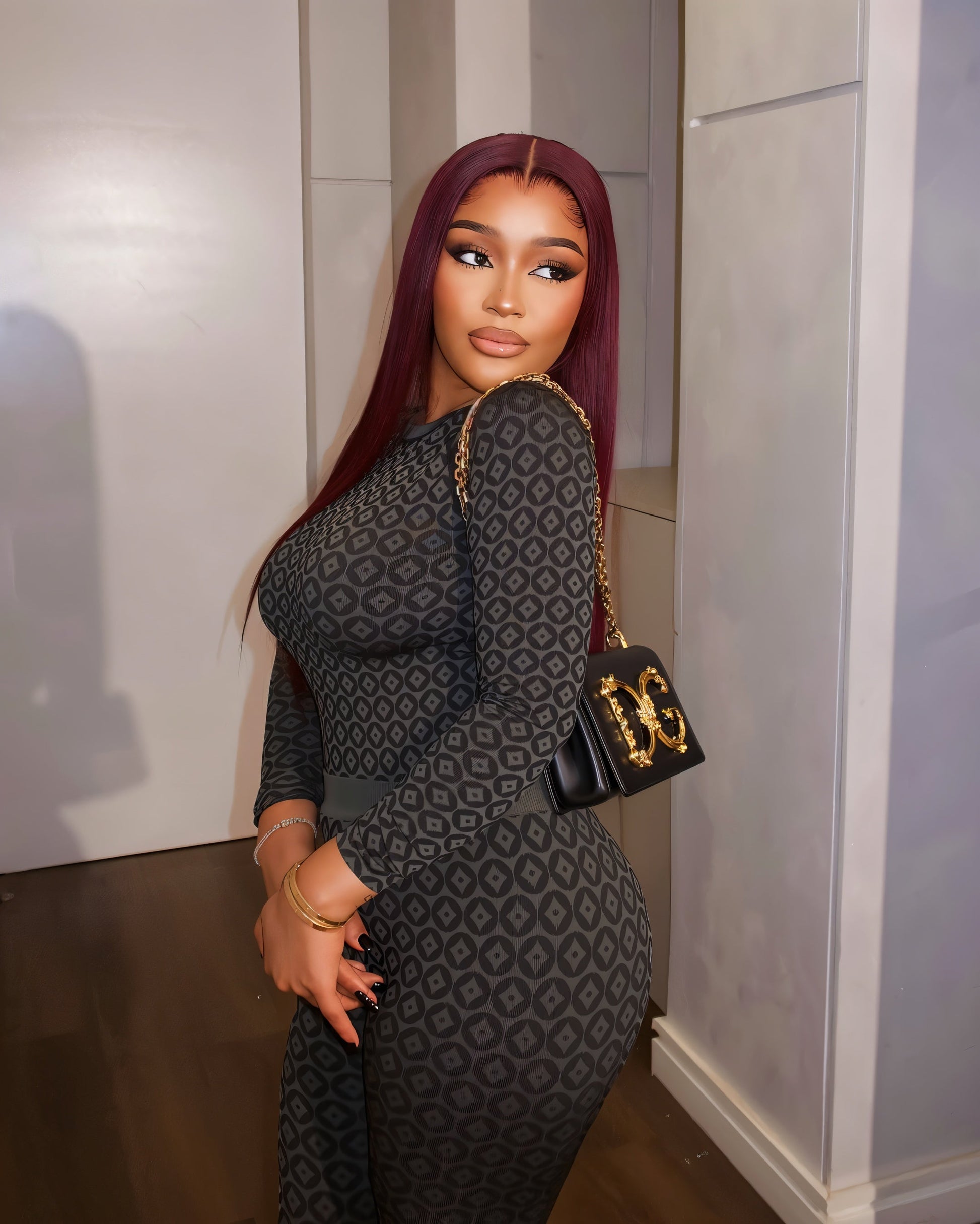 Sleek, sculpting, and effortlessly chic, the Giselle Set is designed to hug your curves in all the right places. Featuring a long-sleeve, high-stretch top and matching leggings with a luxe geometric pattern, it’s the perfect blend of comfort and sophistication.