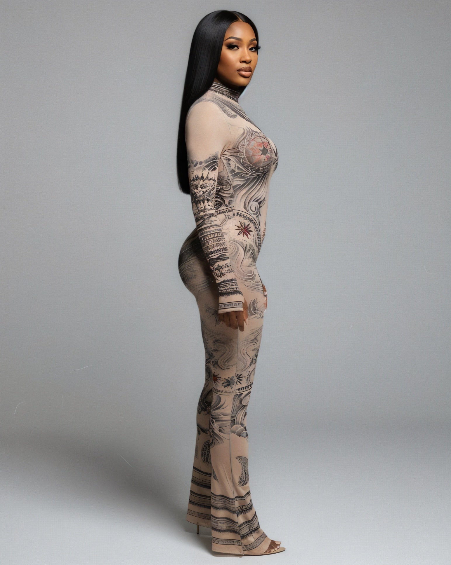 KORI is a statement you wear. With its striking print, second-skin fit, and sheer confidence, this jumpsuit is pure main-character energy. Bold, unapologetic, and unforgettable—Kori was made to own the night.
