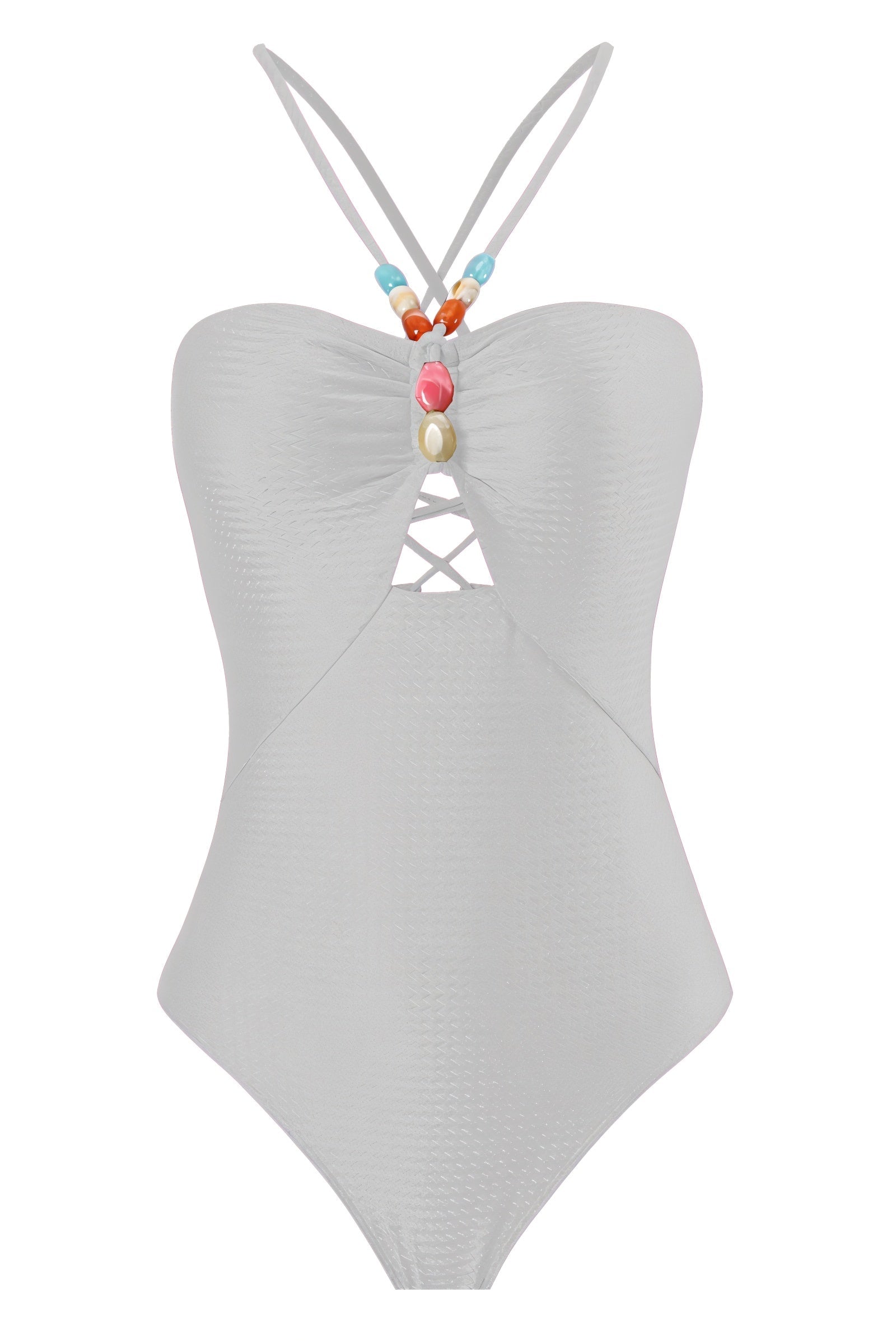 LOTTIE Beaded One-Piece Swimsuit & Tie Maxi Skirt Set