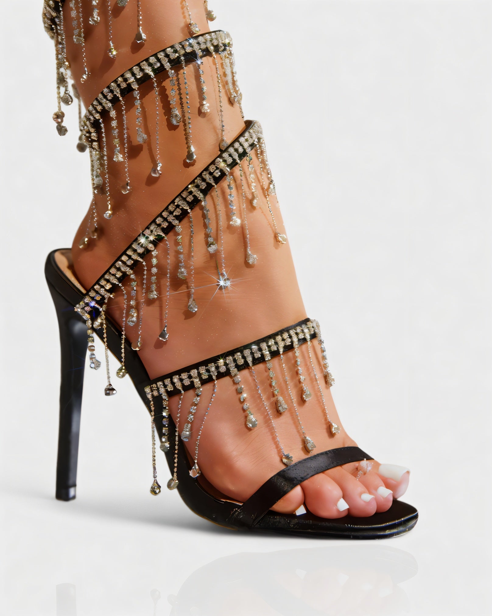 Dripping in rhinestones and made for the baddest. The Mandy heels are a statement—bold, luxe, and built to turn heads. Pair them with your hottest fit and step out like you own the night. Because being lowkey was never an option.
