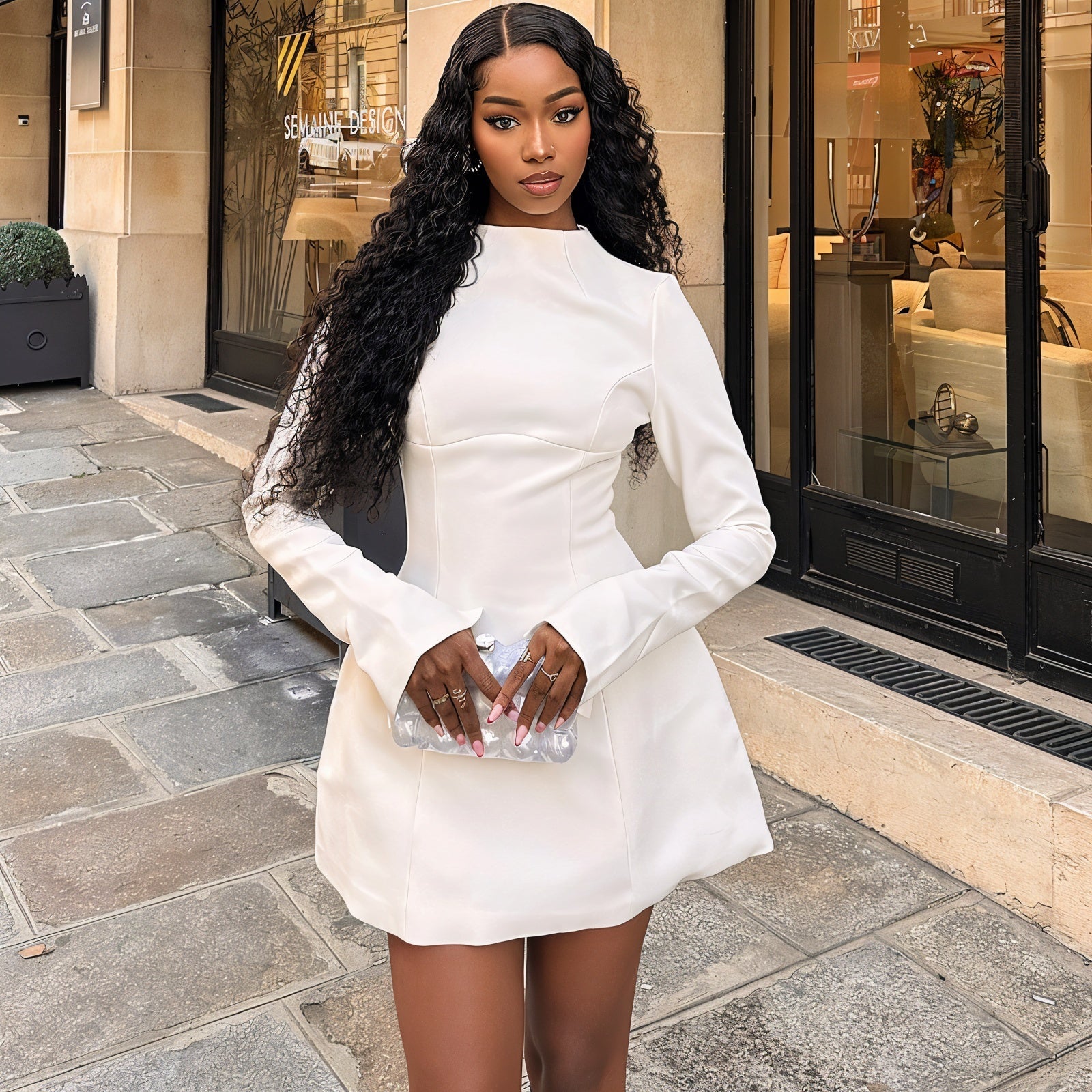Serve timeless glam in the MELODY Mini Dress. With a sleek high neck, flirty backless design, and structured fit, this dress brings effortless elegance with a hint of drama. Perfect for turning heads wherever you go.