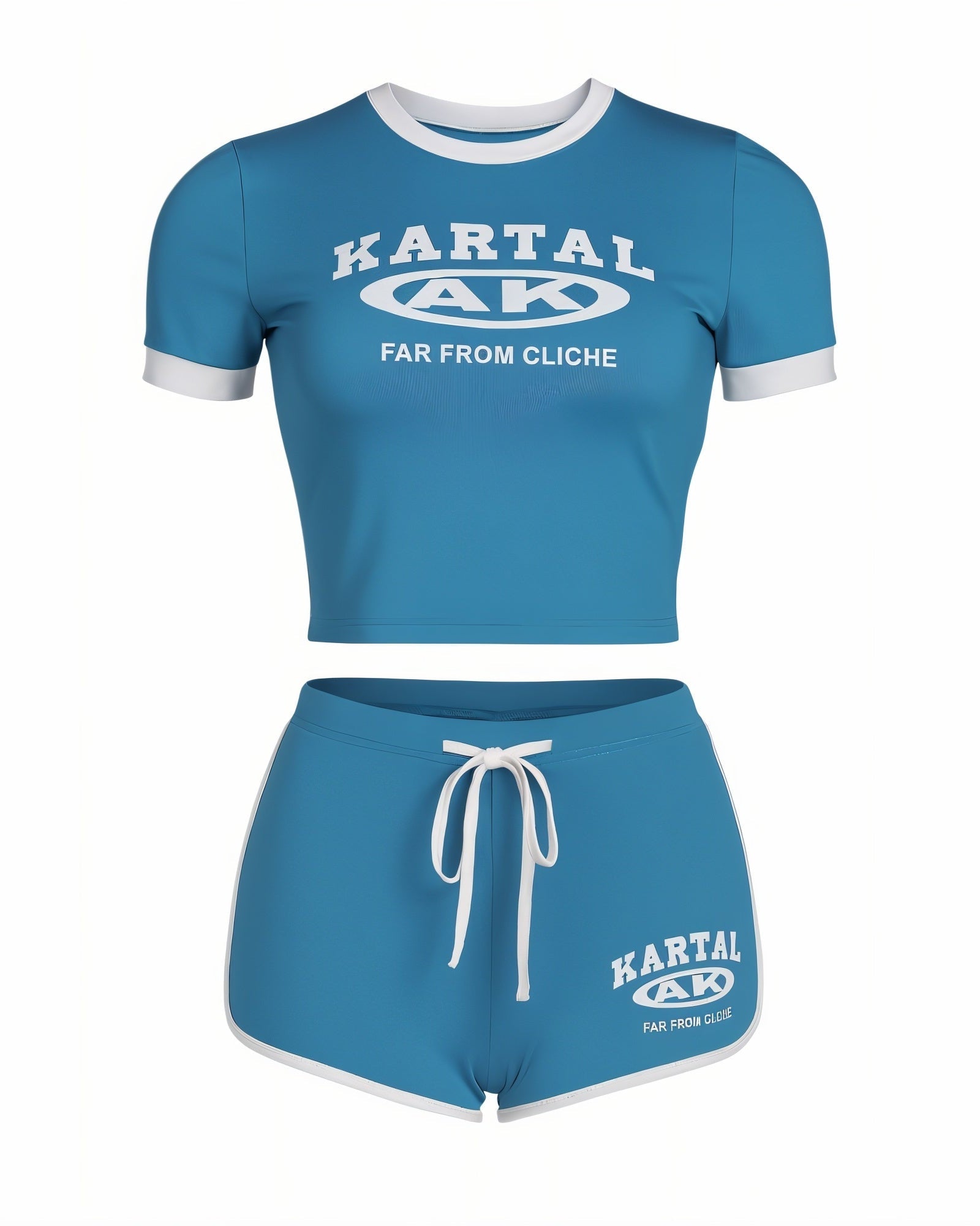 Hit refresh on your casual style with this sporty and chic Graphic Print Set. Featuring a comfortable crew-neck crop top with contrast trim and a bold graphic print, perfectly paired with matching shorts that offer an elastic waistband and similar graphic details.