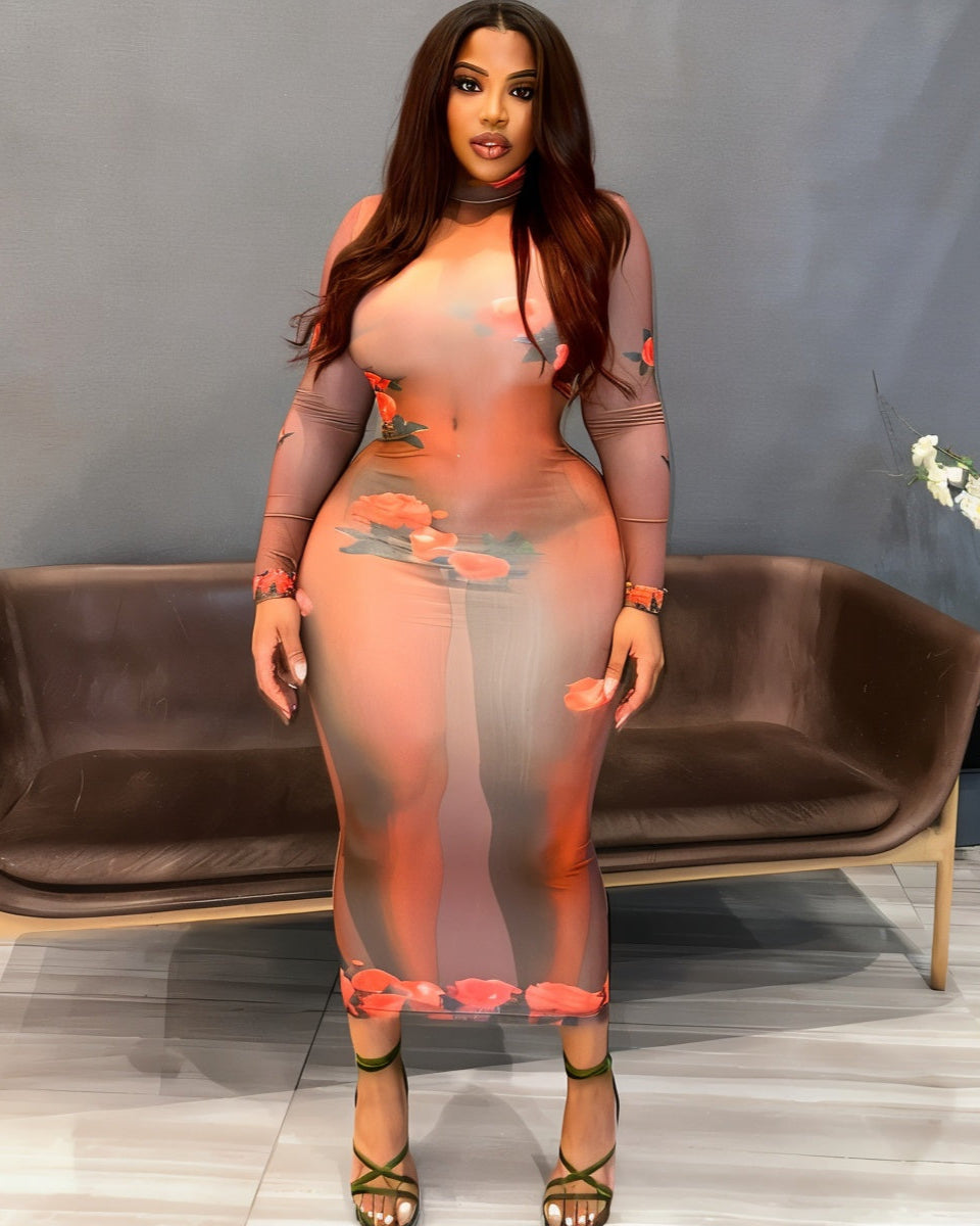 Floral, fiery, and figure-hugging the Mireya Maxi is your power move in print. Designed with a curve-contouring silhouette and soft mesh overlay, this dress brings ethereal energy with a seductive edge. The dreamy poppy design fades into warm sunset tones, making it the ultimate statement for nights that demand attention.