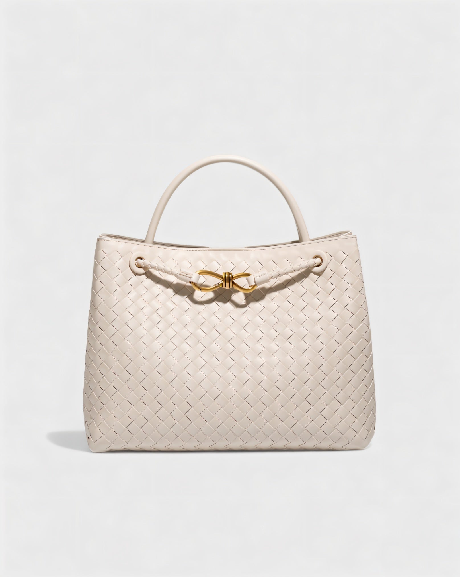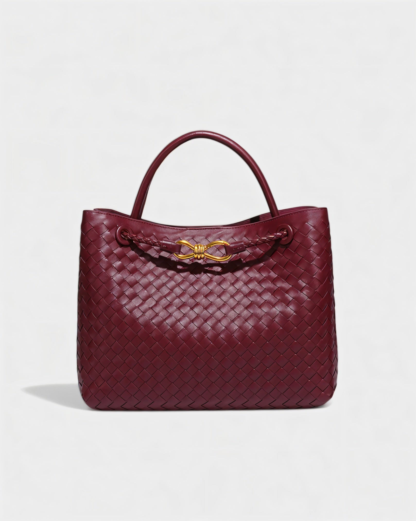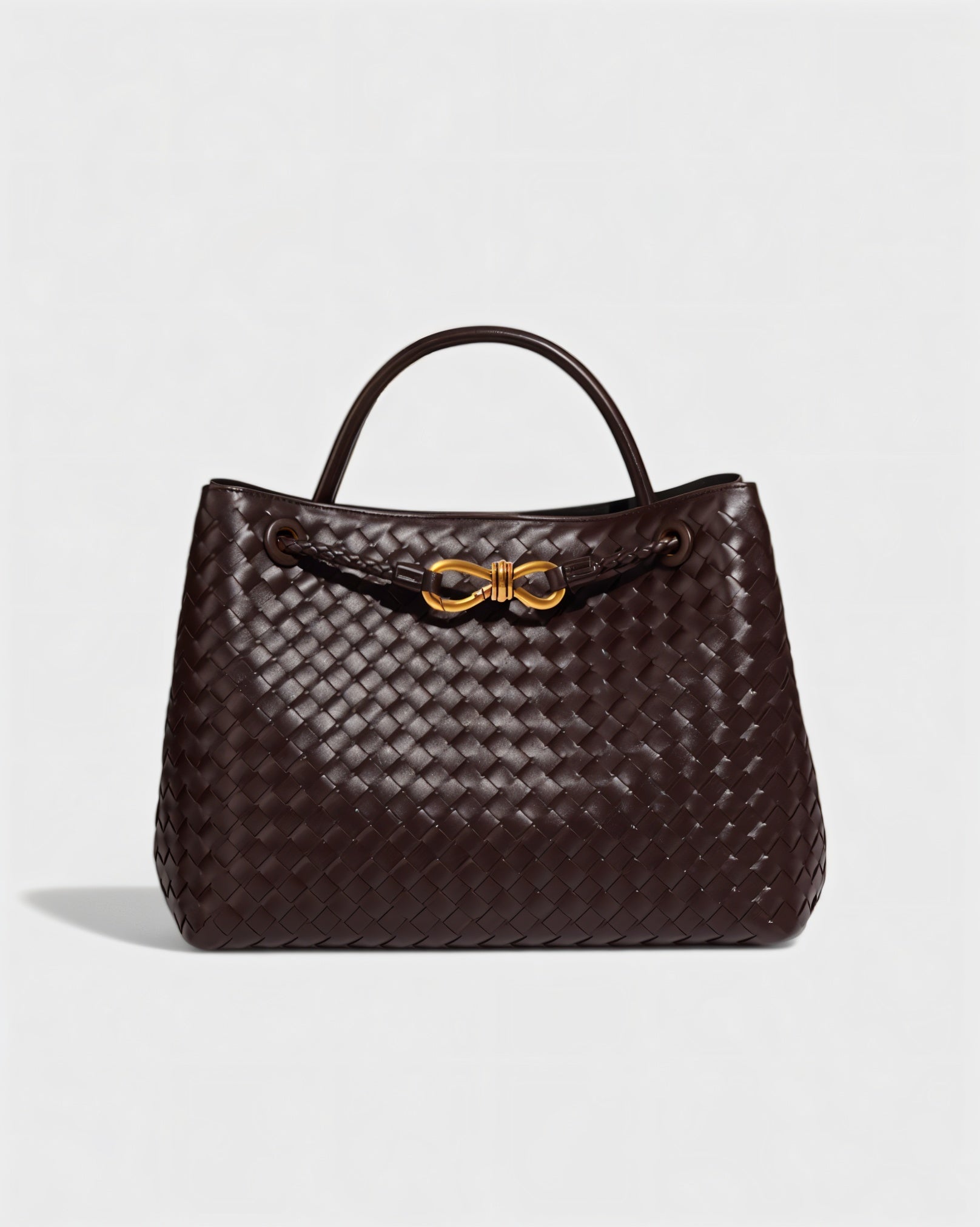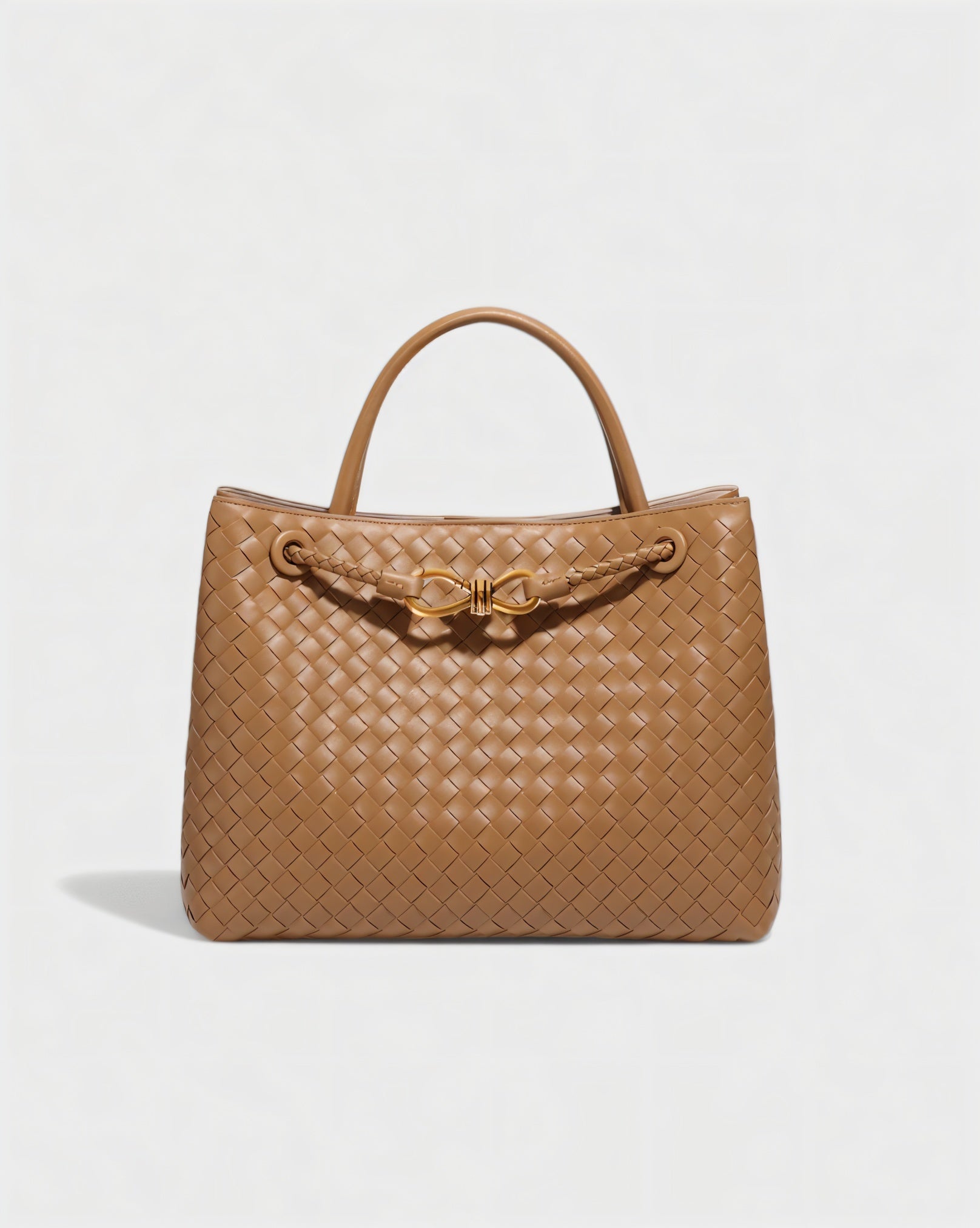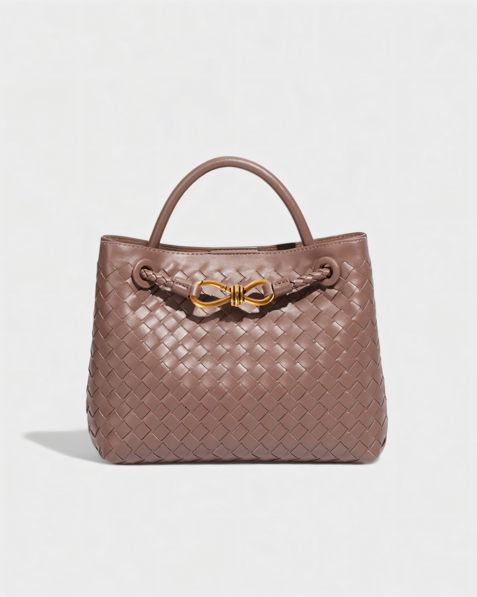 - Woven texture with gold-tone details
