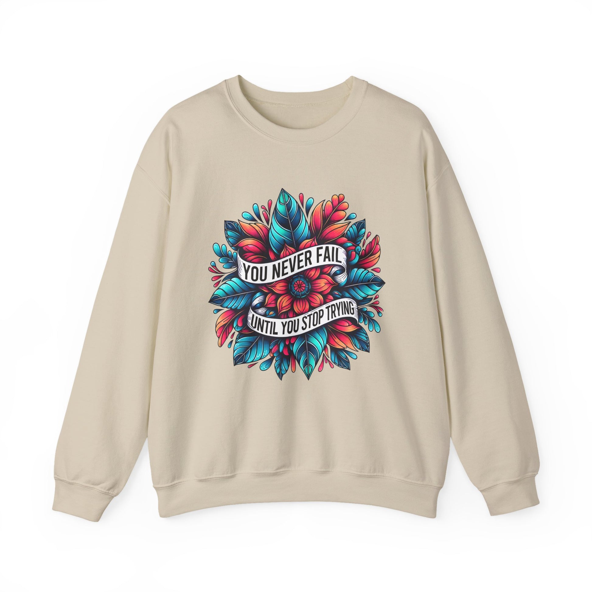You Never Fail Until You Stop Trying Motivational Crewneck Sweatshirt